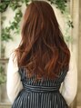 カットは、ローレイヤーロングスタイルベースで、少し重めにカット。 カラーは8トーンのピンクベージュで染めました。 仕上げは、38ミリのコテで毛先にランダムに巻いて最後に崩しました。大人可愛いヘアです。