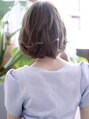 定番のボブにパーマと軽さで雰囲気を変えたフェザーボブ。 トップはしっかり、ネープは緩めにメリハリを加えたスタイルです。 セットもしやすく朝5分寝坊できます。 カラーはスモーキーベージュでそよ風なびいた時にメンズの心をくすぐらせて。【新小岩】