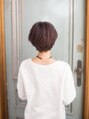 かわいい印象になりすぎないように、フォルムにメリハリをつけて前がみもストレートラインに。人気のマッシュショートを大人っぽく仕上げました☆カラーはピンクヴァイオレットでアンニュイで艶っぽくしています。大人女子におすすめなスタイルです☆