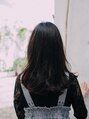 ワンレングスベースのセミディスタイル。カラーリングは光の当たり方によって黒髪にもブラウンにも変化する流行りの暗髪です。ただの黒髪ではなく、透明感のあるカラーなので重すぎないラフな印象になるのでオススメ♪【新小岩】