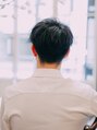 サイドはツーブロックにしてバックは刈り上げてすっきりと。フロントは長めのマッシュシルエットにしているので、スタイリングが楽しめるスタイルです。軽くニュアンスでかけたパーマスはタイリングをよりやりやすくしています【新小岩】