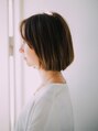 王道なボブ スタイル。バングをセンターで分けることで子供っぽくなりすぎないように。カラーリングは少しでも動きや立体感の見えるように、ハイライトとローライトを入れました。自然な内巻きになる簡単スタイリングです。【新小岩】