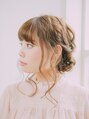 サイドの後れ毛を多めに残したルーズなロールアップアレンジスタイル。トップも大きく引き出しルーズに。ロールアップ部分は三つ編みを崩して根元に向かって巻き上げています。かたちをあまり気にせず、ふんわりするのがポイント!【新小岩】