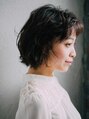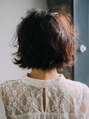 ミディアムボブにカールを散らしたスタイルです。ウエット系のジェルスタイリング剤で細く毛束を作り立体感のでるようにしています。襟足を外巻きにして丸いシルエットより四角いシルエットにしてカジュアルよりにしています。【新小岩】