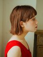 肩上レングスのカジュアルな切りっぱなし外はねボブスタイル。バングは眉下の長さで、巻いて眉の長さになるようにしました。カラーリングはベージュ系でハイライトを全体に入れて動き、立体感の出るようにしました。【新小岩】