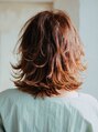 カラーリングはナチュラルなブラウンをベースにしたグラデーションカラー。レイヤーを生かした外ハネのスタイリングです。今流行りのミディアムウルフスタイルになります。センターパートに分けることで大人っぽい雰囲気にすることができます。【新小岩】