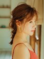 くるりんぱを使った無造作な編みおろしアレンジスタイルです。三つ編みをラフにほぐした抜け感があるスタイルです。後れ毛も自然に馴染むようにニュアンス巻きをしています。二次会やちょっとしたお出かけにおすすめです。【新小岩】