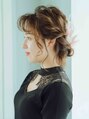 まとめてありますが長さは鎖骨より長いスタイルにはなってます!ツイストさせほぐした束を何個か作り最後にまとめたスタイル!アレンジと髪飾りで可愛い雰囲気なので、まとめる位置はあまり高くすると甘々になるので低めの位置がオススメ