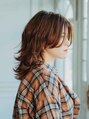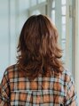 センターパートのミディアムウルフヘア、全体にハイレイヤーをいれてゆるめのパーマで動かしたスタイル。スタイリングはドライでラフに散らしてオイルでさらっとスタイリング。足りない部分はカールアイロンで外ハネを混ぜてみるのもいいとおもいます!