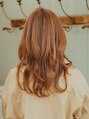 ハイトーンのロングスタイル。前髪があるスタイルなので重たさが出ないようにカラーはオレンジ系のブラウンに。毛先にかけて明るくなるような自然なグラデーションになるようにしてあげるととても柔らかい印象になります[新小岩駅/新小岩駅南口]