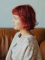 ショートのレングスの外ハネスタイルです。レイヤーをいれてハネさせることによって動きが出て立体感のあう仕上がりにみせることができます。カラーは個性的なピンクレッドです。スタイリング剤は艶感がでるオイル又はバームがおすすめです。〔新小岩駅〕