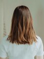 鎖骨下でぱつっと切り揃えたセミロングスタイル。最近ミディアムやセミロングも切りっぱなしが人気ですが、ただの切りっぱなしではなく、毛先のラインを残しつつ軽さも出しているのがポイント!前髪から繋がるサイドバングも必須!〔新小岩駅〕