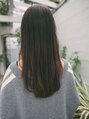 ワンレングスベースの重さを残したナチュラルロングスタイル。前髪を少し広めに、作り束が出るように軽さを出して、顔まわりをすっきりと見えるようにしているのがポイント!全体に少しレイヤーを入れ、毛先に動きが出るようにしています。〔新小岩駅〕