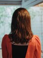 表面にあまりレイヤーをいれずおもための感じに仕上げています。カラーがブラウン系の色なのでそんなに重たい印象が出ない明るく大人っぽいスタイルです!ブラウンに少し紫をたすとツヤ感がでます前髪に隙間を作って今っぽいスタイルに!〔新小岩駅〕