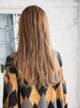 胸くらいの長さをベースに前髪を長めに作ったレイヤーデザイン。フロント側のみ急な段が入る事で縦長でカッコいい雰囲気をキープしています。カラーは透明感をしっかりだし、暖かみを残したブラウンにする事で外 人のすがみのようなムードにしあげています。