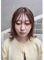 重くなりがちなミディアムボブのベースに、シースルーバングと顔まわりのレイヤーで軽さをつけたスタイルです。ダメージの少ないソフトなブリーチをして、ツヤ感と透明感のあるブラウンに仕上げてます。伸ばしかけで変化つけたい方にもおすすめです。