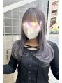 透けるようなライトグレーのハイトーンカラーです。若干だけパープルを入れる事によって色落ちが綺麗です。カットはサイドにレイヤーをたっぷり入れて軽くしてます。顔出しNGのためスタンプを加えましたm(_ _)m