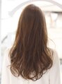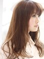 カット・胸ラインのレイヤースタイル。適度に軽さもいれてます。カラー・10レベルのアッシュブラウン。パーマ・大きくゆるめのパーマをかけます。