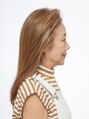 白髪が伸びてきても目立ちにくい明るめベージュブラウンで、肌のトーンもアップします。前髪の分け目が出ないようにすることでトップに高さがでます!