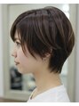 前髪と顔周りの毛束が透け感のあるシースルー効果を生み出し、小顔に見せてくれるショートスタイル。後頭部のボリュームとサイドの繊細なレイヤーが立体感を演出。ナチュラルながらも洗練された印象で、デイリーからオフィスまで幅広いシーンで活躍。