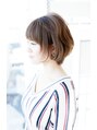 透明感のあるカラーで柔らかい質感に。艶感、透明感を出したい方にオススメ。エアリーショートにローライトなどパーソナルカラーの相談もお気軽に。ブラントカットでモードレトロにイノセントカラーやイメチェンの相談もお気軽に
