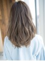 毛先が徐々に明るくなるようにバレイヤージュを入れ、全体にアッシュフィルージュで透明感が出るようにしています。パーマがご希望の方は、ゆるいカール感もオススメです。ブラントカットでモードレトロにイノセントカラーやイメチェンの相談もお気軽に