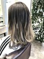 内側に暗めの髪を残して奥行きを感じるバレイヤージュ×グラデーション☆太めのコテで緩めに中間から巻くとハイライトと通常のカラー部分が混ざり合っていい感じになります☆[横浜/横浜駅]
