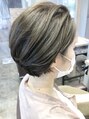ふんわりショートボブスタイル!ブリーチはしないでイルミナカラーの1番明るいカラーのオーシャン、フォレスト、ディープシーなど寒色系をブランドしてブリーチしたような透明感のヘアカラー!