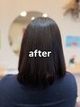 40~50代の大人女性に人気のヘアドネーションカット。ロングをバッサリ切って気分も軽く、それでも女性らしい長さはキープ。トリートメントでツヤとまとまりが出て、年齢によるパサつきも改善。次回の挑戦も楽しみな美髪スタイルです。