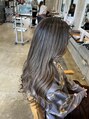 細かいハイライトをたっぷり入れつつ、ベースカラーはダークアッシュ。ハイライトのコントラストがポイントです。ダークトーンのカラーだけど、ハイライトがあるので透け感ばっちり。人と被りたくない。すぐ退色するのが気になる方などにおすすめです!