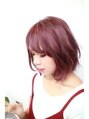少し長めのボブの表面にレイヤーをいれ、動きと軽さをプラス。青みのあるレッドでツヤ感を引き出しています。少し縦長なシルエットなので、丸顔の方にもオススメ☆