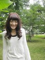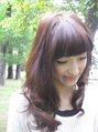 艶をキープしつつ大きめパーマでロングに動きをだしたスタイルです。カラーはレッドを少し足して落ち着いたブラウンに仕上げています