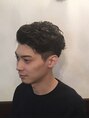 アウトラインを刈上げたツーブロックスタイルに無造作パーマをあてています。