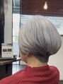 ヘアモデルのご協力ありがとうございます サイドは流れるようにカットしバックは刈り上げたグラデーションボブ グレイヘアを活かしムラサキシャンプーで黄ばみを取りました。 仕上げはオイルでツヤとまとまりを。