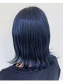 - ブリーチを2回し綺麗に明るくなった状態で思いっきり暗めにダークブルーをいれました。