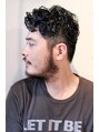 サイドからバックまで9ミリでナチュラルに刈り上げトップはパーマで遊びを効かせたスタイル。