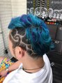 某夢の国のモンスター映画、おっきい体をしているが性格は温厚なキャラクター風カラーにしました!それに合わせてバリカンアートもさせていただきました!派手髪 個性的 原色カラー メッシュ