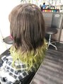 根元ブリーチリタッチと毛先ブリーチをした後、毛先以外を大人っぽいグレージュに、毛先をパステル黄緑カラーにしてゆるく巻き仕上げました~