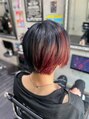 もともと髪色の明るい方でしたので、根元のみブリーチリタッチしたのちにレッドブラウンとブルーブラックに仕上げました!センター分けでツートンに、分け目を変えてインナーカラーのように見せることができますよー!