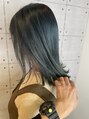 カラーを引き立たせるため、ストレートに仕上げ毛先だけストレートアイロンで外ハネに。毛先を揃えて外ハネにするのがポイントです、
