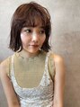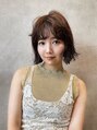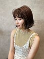 コンパクトなミディアムボブにショコラベージュで柔らかさと透け感を出し、仕上げに遊びのあるカールをアイロンで付けています。色んなお洋服やシーンに合いやすく、簡単にいつもと違う雰囲気になるのでお試しください。スタイリスト高橋