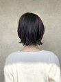 かきあげニュアンス前髪に少しレイヤーの入ったボブウルフスタイルです。さっぱりしながらも女性らしい色気の漂うボブに仕上っています。