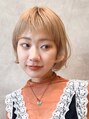 顎レングスのミニボブをベースに、ヘアアイロンでニュアンスカールをオン。カラーはブリーチオンカラーでまろやかなブロンドベージュに仕上げることでフェミニンさを残しながら、最旬な雰囲気を表現。