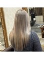 透明感たっぷりのホワイトミルクティーカラー赤み・黄ばみを抑えたやわらかい色味で、ブリーチ毛でも上品な仕上がりに。色落ちまで可愛いのも人気のポイントです◎
