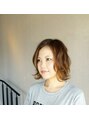 アッシュベースに表面とサイドのみハイライトを入れることでストレートの時と巻いた時で印象の違うミディアムの外ハネミックススタイルです。