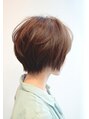 柔らかい質感をカットで表現したグラデーションショートボブのスタイル。トップから放射状にレイヤーを入れてふんわり動きが出るようにしています。