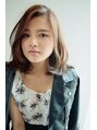 クールフェミニンな雰囲気をイメージしたミディアムのヘアスタイル。カラーはアッシュブラウンベースにハイライトを入れて透明感と動きをプラス。