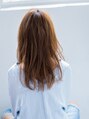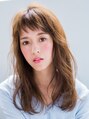幼く見えがちな眉上前髪も、全体的に頑張り過ぎないラフなウェーブで大人の女性らしくなります。 透明感のあるアッシュ系カラーで、巻いた時に重たく見えないようにしました