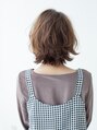 下は外跳ねにして、上はルーズなカール感を出し、エレガントさとカジュアルさを組み合わせたスタイル。 いろいろな方向に毛先が向くことで立体的をもたせます。 カラーはウォーム系カラーにして落ち着かせました。