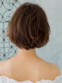 ネープ短めのあご下ボブに切って、ボリュームの位置を少し上げています。首が長く見えます。トップに少しレイヤー入れてボリュームを出すので、柔らかい毛にもオススメ!カラーは少し明るめのラベンダーブラウン。